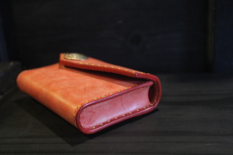 ロー引き革にてタバコケースの